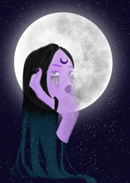 Une déesse dont les larmes seraient composées de fragments de lune et ne seraient visibles que lors d’une pleine lune
