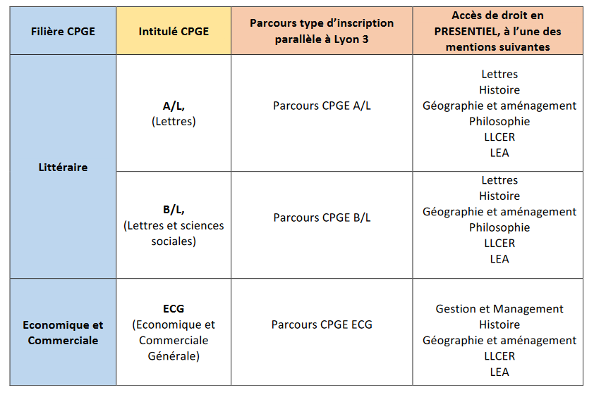 - Les fili¨¨res CPGE propos¨¦es ¨¤ l¡¯universit¨¦ Lyon 3 et leurs correspondances
