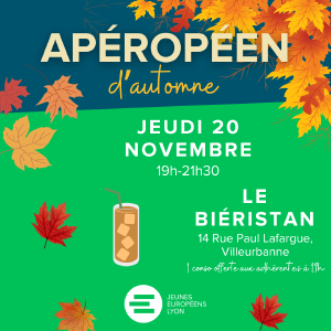 Une occasion parfaite pour parler d'Europe de mani¨¨re chill, et ce peu importe ses ¨¦tudes ou ses connaissances !Ap¨¦rop¨¦en - Par Les Jeunes Europ¨¦ens Lyon