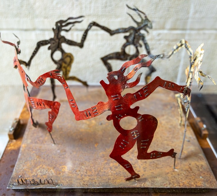 L’interprétation d’Ursin témoigne cependant d’une nouvelle revendication : il s’agit ici d’une dédicace aux femmes en lutte. La danse des guerrières sculpte des corps déformés mais solidaires dans une danse perpétuelle, en lutte pour la liberté. Contrairement à Matisse où les corps sont flottants, il y a une recrudescence du corps chez ces guerrières ancrées dans une réalité sociétale. ? force de persévérance, leurs idées prennent racine dans cette terre : seraient-elles des bourgeons ?