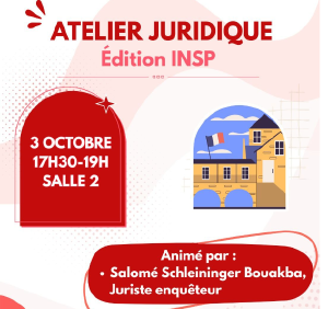 Participez ¨¤ notre Atelier juridique ¨C Edition INSP : une occasion privil¨¦gi¨¦e pour obtenir des r¨¦ponses claires gr?ce aux t¨¦moignages d¡¯une ancienne ¨¦tudiantes ¨¤ l¡¯INSP. Vous aurez l¡¯opportunit¨¦ de d¨¦couvrir les perspectives professionnelles, les conditions et proc¨¦dures du concours, et les meilleures strat¨¦gies de r¨¦ussite !