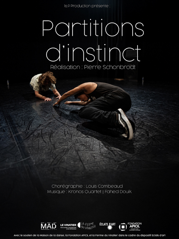 Synopsis : ? travers la danse et l’expression artistique par le mouvement du corps, le projet ? Partitions d'instinct ? a pour ambition d’accompagner des jeunes suivis par l’équipe de PEP’s (Programme d’intervention structuré pour les premiers épisodes psychotiques) de l’h?pital du Vinatier et des personnels soignants sur le chemin d’une découverte de soi et des relations aux autres qui se passe des mots et du langage.